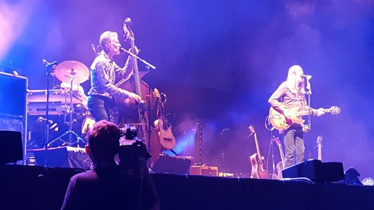 Before we went to the show I hadn’t checked to see who the opening bands were. I was pleasantly surprised to see that the opening band was Parsonfield. I reviewed one of their songs for a Grapevine post last year (see September 2020 Grapevine). They played this show as a two piece with some backing percussion tracks. It’s a challenge for a band to do a two person set on a live stage, but they pulled it off in fine style. They changed instruments several times moving between guitar, bass, banjo and mandolin. a very upbeat and energetic set. (Excuse the blur on the second image – I’m not great with phone photos).