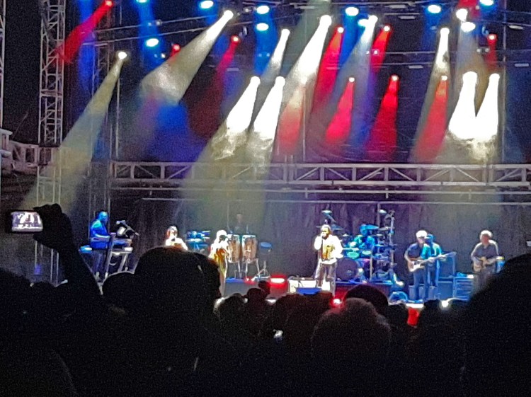 Let’s talk about the band. It was a large ensemble. Two guitar players (in addition to Marley playing on some songs), two keyboard players, bass player, kit drummer, percussion player and two back up singers. That’s a pretty large band. And this band was really tight. When you’re working music that lives on a groove, anybody out of sync can destroy the feel. Everyone in the band held their own, coming front and center at spots and blending perfectly the rest of the time. Also kudos to the person who was doing the mixing at the venue. That’s a lot of players to work with and if you don’t do it right the entire show can sound like mush. It’s even more difficult when you’re at an outdoor open venue. Add to that the venue was in what is usually a parking lot so you have to deal with bounce back from the ground surface. The mix was spot on perfect.